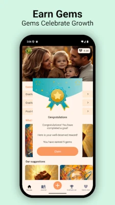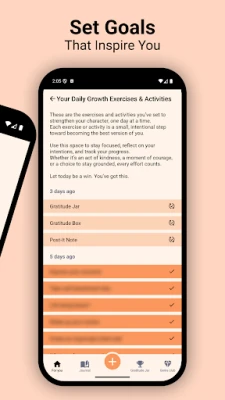 Every day, choose one character strength to focus on, like gratitude, kindness, or bravery. Set meaningful goals, reflect with guided journaling, and earn gems as you grow. Small daily actions become big transformations.