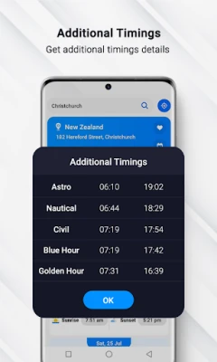 - Civil, Astronomical and Nautical Sunrise Sunset times also available.