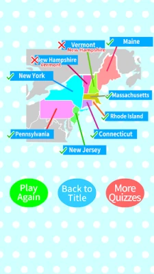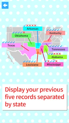Features: ・Drag-and-drop style map quizzes ・Display your previous five records separated by state.